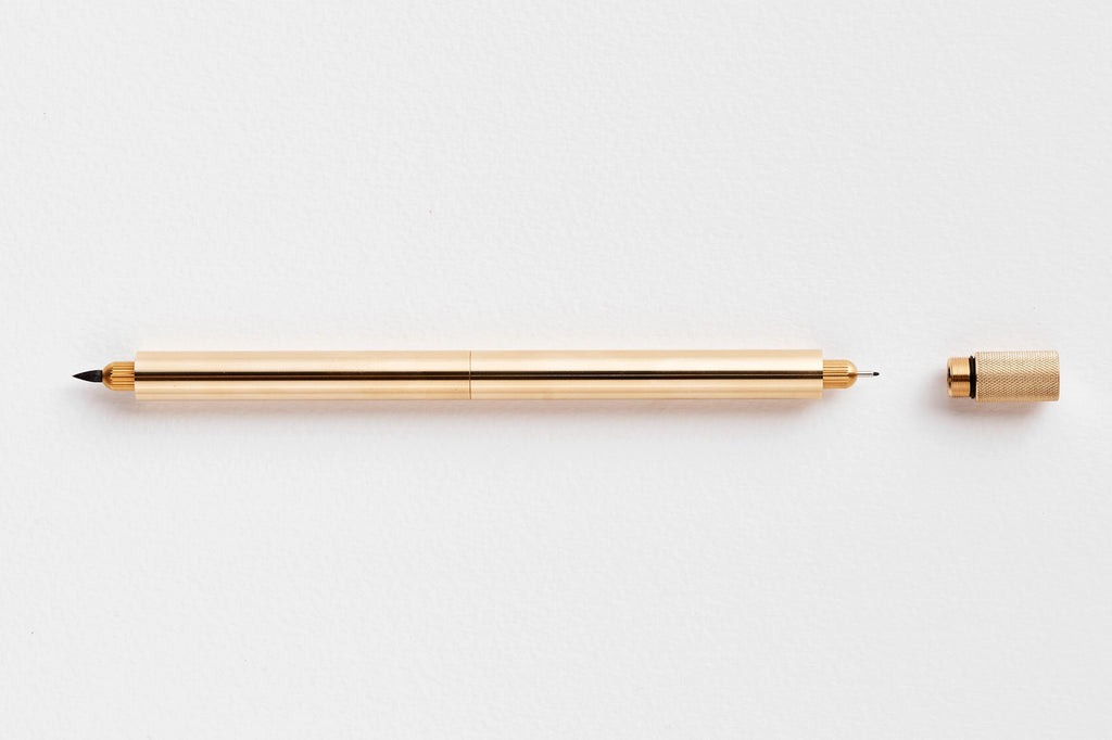 Infinitely refillable, the Lumos Pro is a felt-tip fineliner pen that allows you to choose the writing tip and ink colour of your choice. The Duo-Tip version of this unique pen offers artists even more versatility by making two different drawing/writing tips at the same time. Made of durable brass, the pen is perfect for any analog drawing or writing kit. Each pen comes with the Lumos Full Creative Tip Set, which includes the following tips: