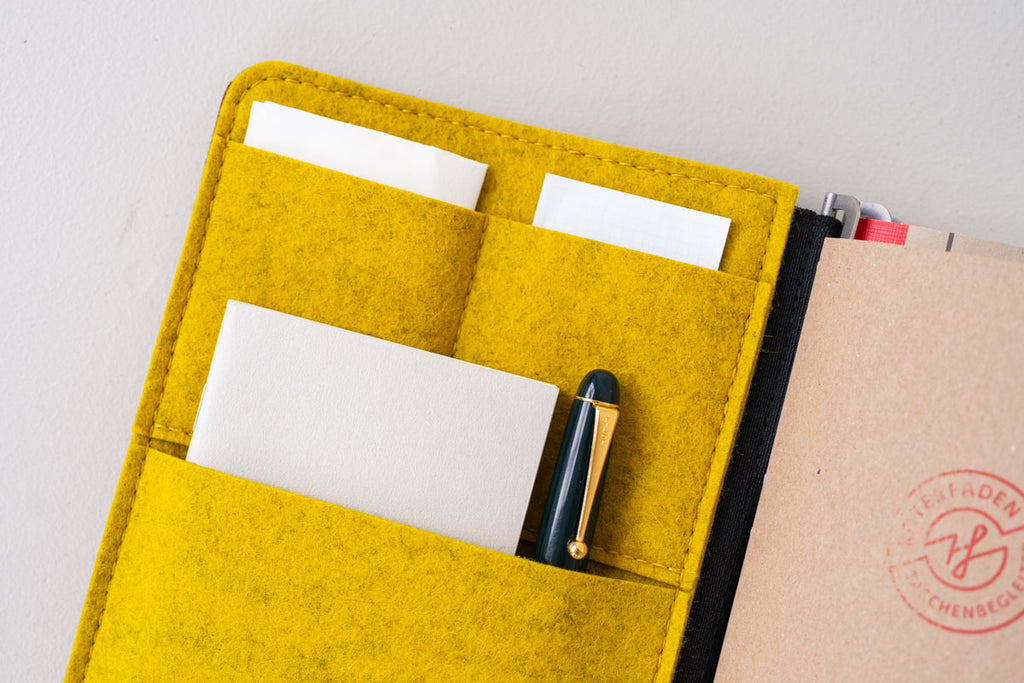 The classic Taschenbegleiter Organiser from ROTERFADEN, now made in limited quantities using recycled printing blankets. This material is not only a great way to reuse and upcycle waste materials from the printing industry, but also provides added dirt and water protection for your favourite notebooks and planner.