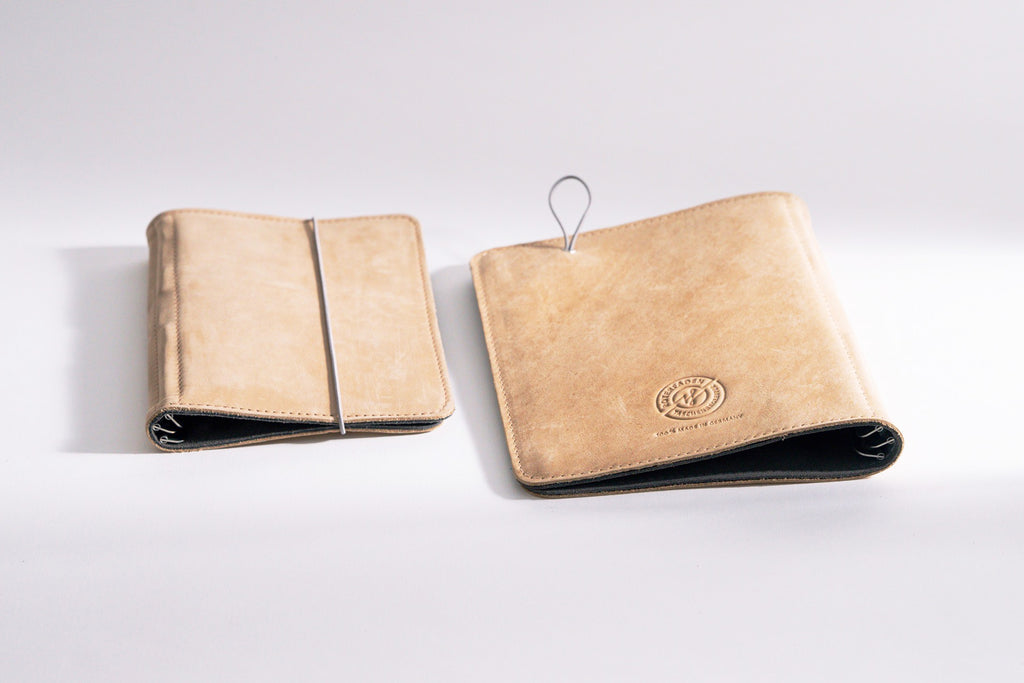 After receiving feedback from many ROTERFADEN Taschenbegleiter users, the SO_20 covers have been recently re-designed to include a removable elastic closure for added flexibility and security. Simply pull out the elastic from inside the back cover if you prefer a completely flat writing surface, or thread it back in through the hole when you need to keep the cover securely closed.
