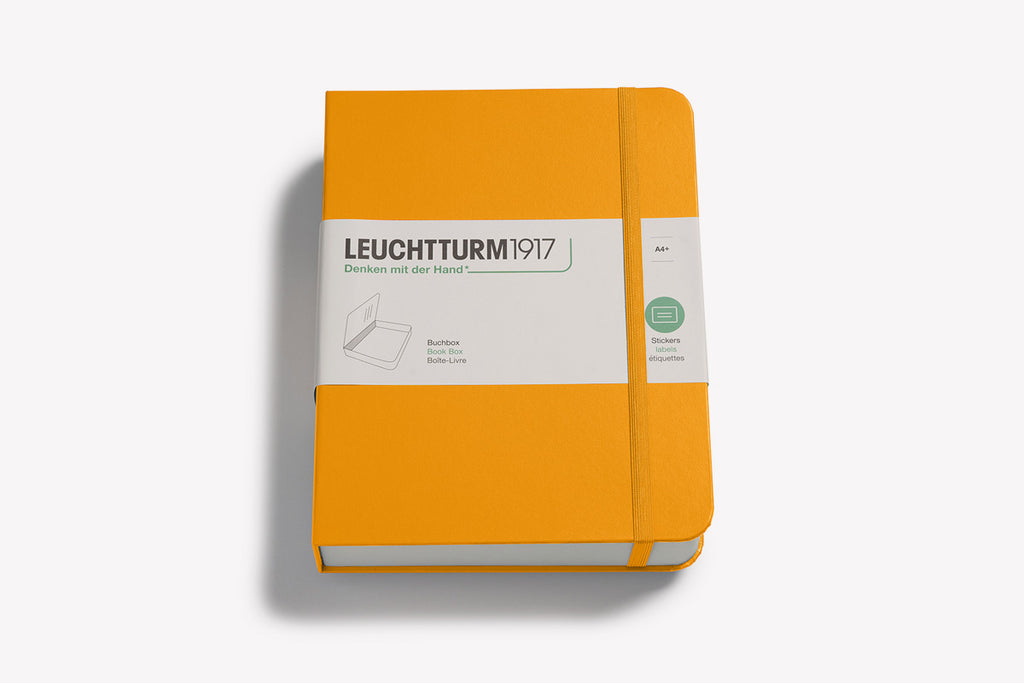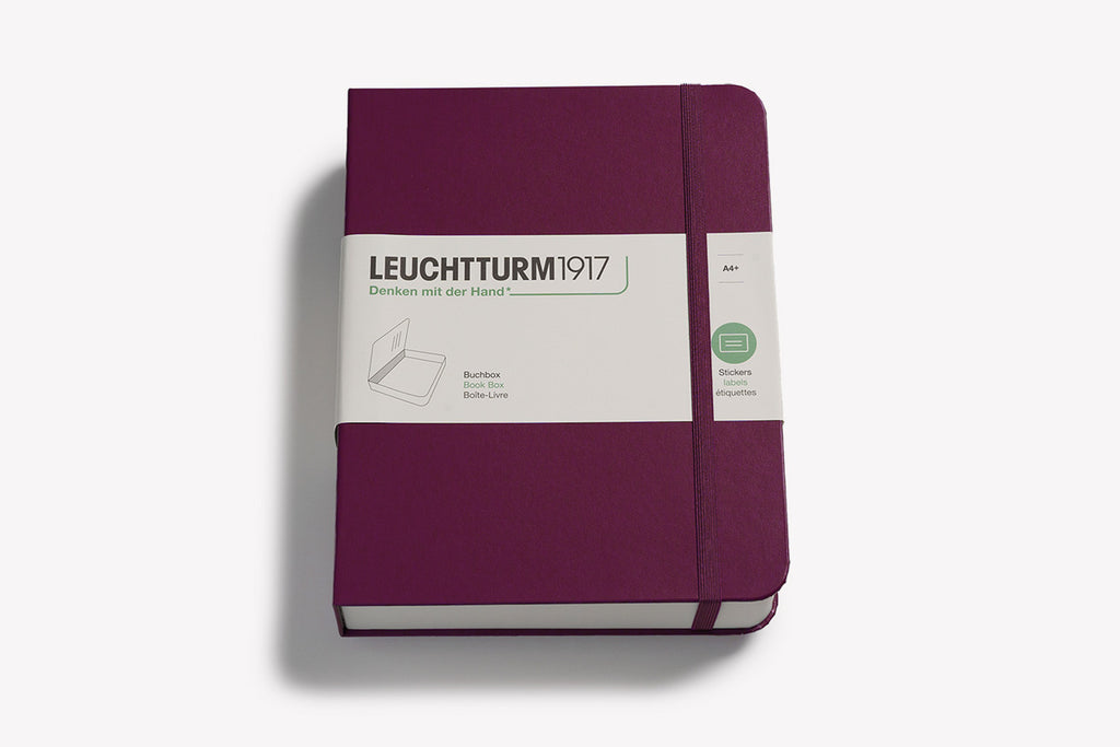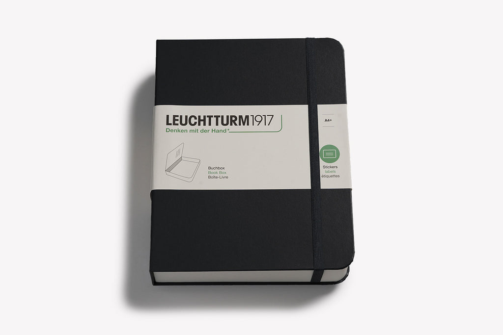 Designed to resemble their classic hardcover notebooks, the LEUCHTTURM1917 Book Box provides plenty of storage space for your mementoes, loose papers, and journaling ephemera. The book box fits on any bookshelf and helps to keep your workspace tidy.