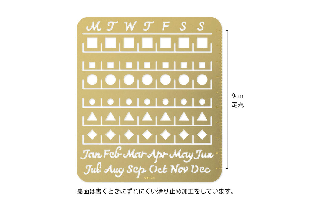 Set up your monthly calendar spreads with this handy brass stencil from MIDORI.
