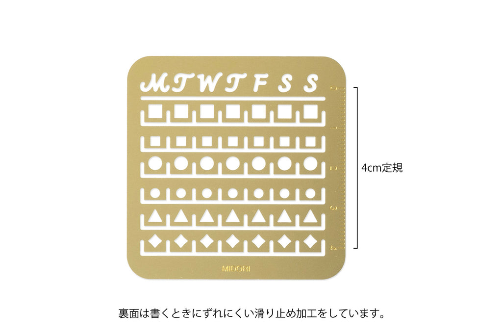 Set up your monthly calendar spreads with this handy brass stencil from MIDORI.